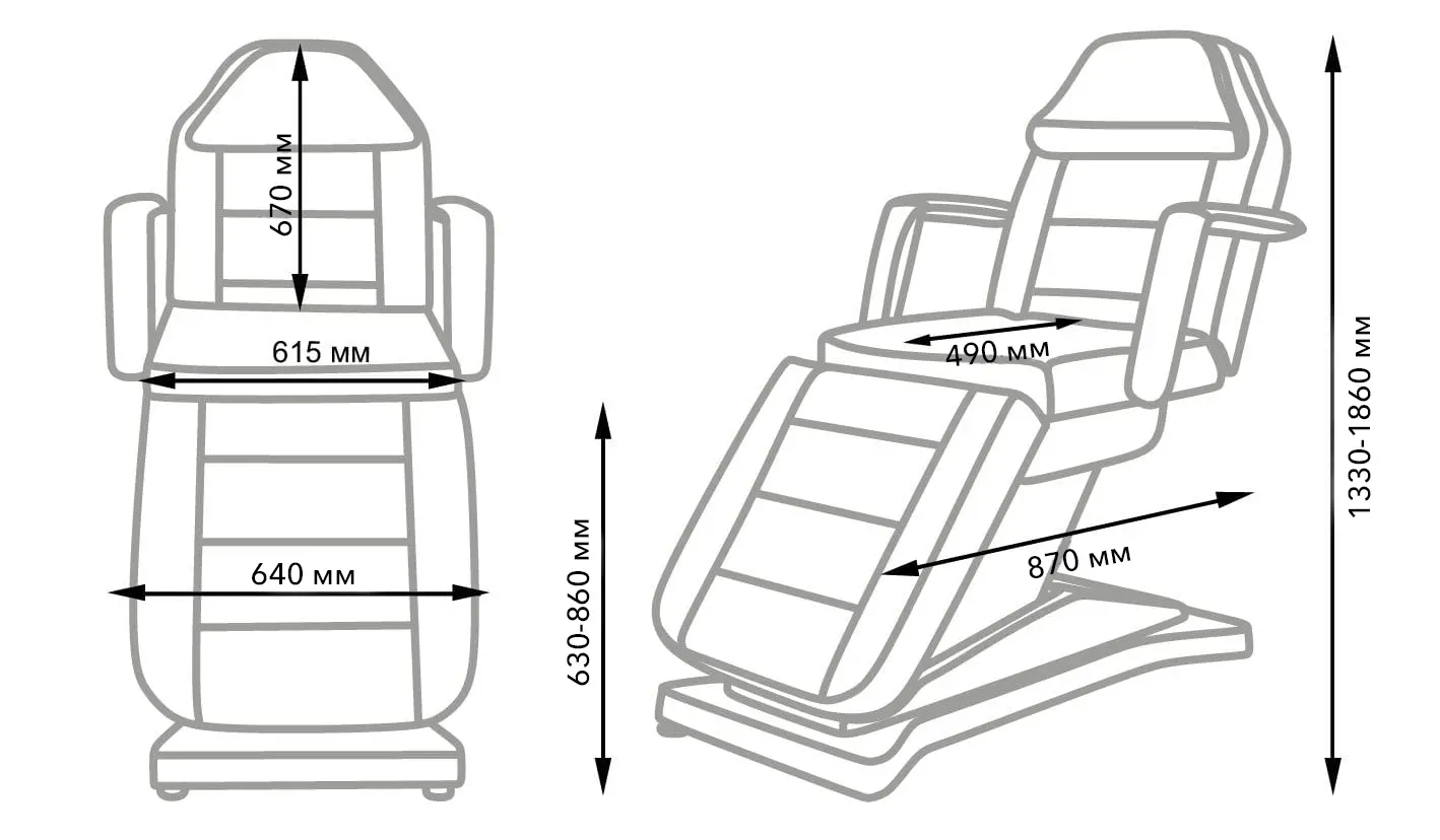Характеристики косметологического кресла МД-836 (Элегия-3С), 3 мотора: