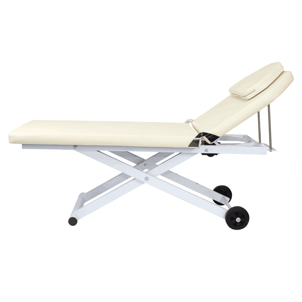 Профессиональная косметологическая кушетка МД-3329 Серебро позволит массажисту выполнять различные виды массажа с комфортом для клиентов. Она произведена из качественных материалов с учетом современных требований к массажному оснащению. Модель МД-3329 имеет прочный металлический каркас, который с одной стороны установлен на подпятниках, а с другой – на колесах. Такая конструкция обеспечивает устойчивость кушетки, а также позволяет легко перемещать и поворачивать ее при необходимости. Кушетка комплектуется электроприводом с одним мотором, при помощи которого мастер сможет без дополнительных усилий регулировать высоту, не прерывая рабочий процесс.