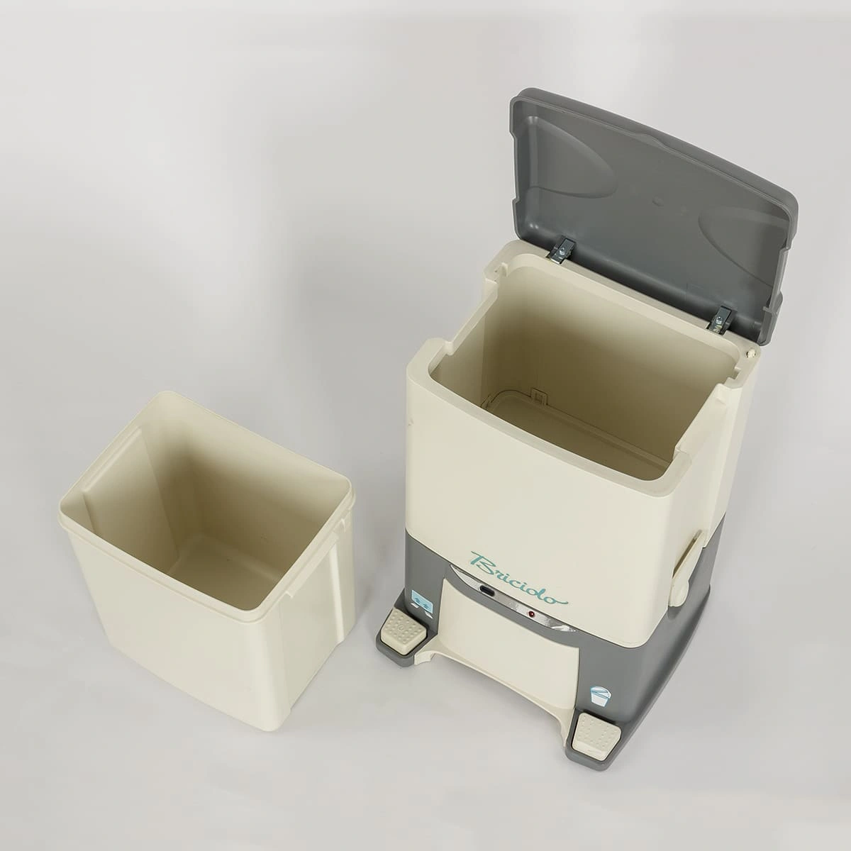 Стационарный пылесос – бокс, состоящий из двух отделов. Верхняя часть используется как обычное мусорное ведро. Открыть крышку можно нажатием ногой на педаль. Нижний отдел отвечает за всасывание мусора на полу.