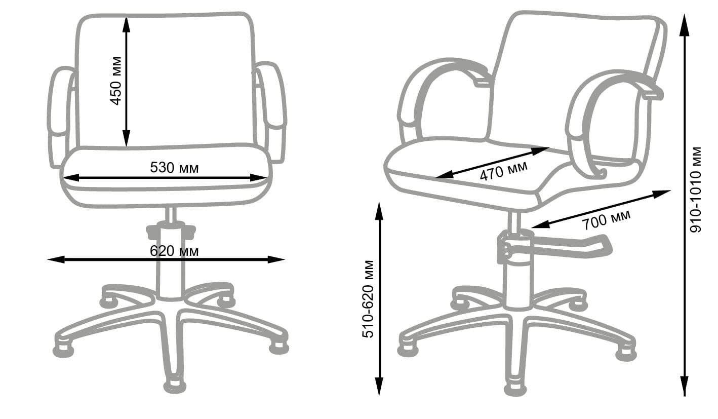 • Подлокотники: изготовлены из полированного металла, с накладками из кожзама в цвет кресла