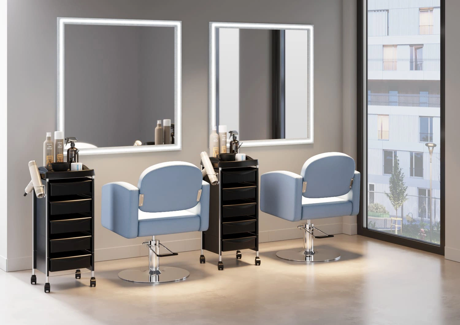 Профессиональное парикмахерское зеркало с рамой из высококачественного материала и встроенной LED-подсветкой обеспечивает яркое освещение и великолепную четкость изображения, делая каждую процедуру максимально точной.